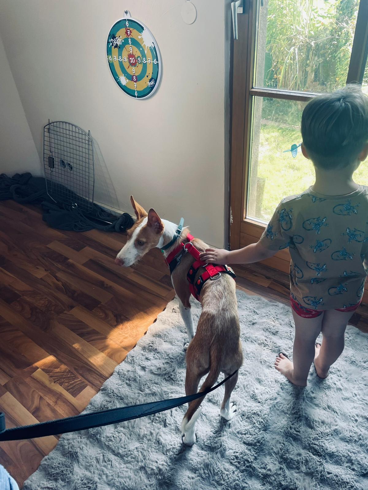 Unser Frodo, der im spanischen Tierheim Refugio Canino La Reserva noch Dorado hieß, lebt seit August 2025 in einer unserer deutschen Pflegestellen. Er ist ein ganz besonderer Hundebub: immer freundlich, sehr verspielt, aufmerksam, lernwillig, anschmiegsam, sehr menschenorientiert und auch bei kleinen Kindern sehr vorsichtig und nie ungestüm. Für einen Podenco ist er ein relativ kleines Exemplar.
