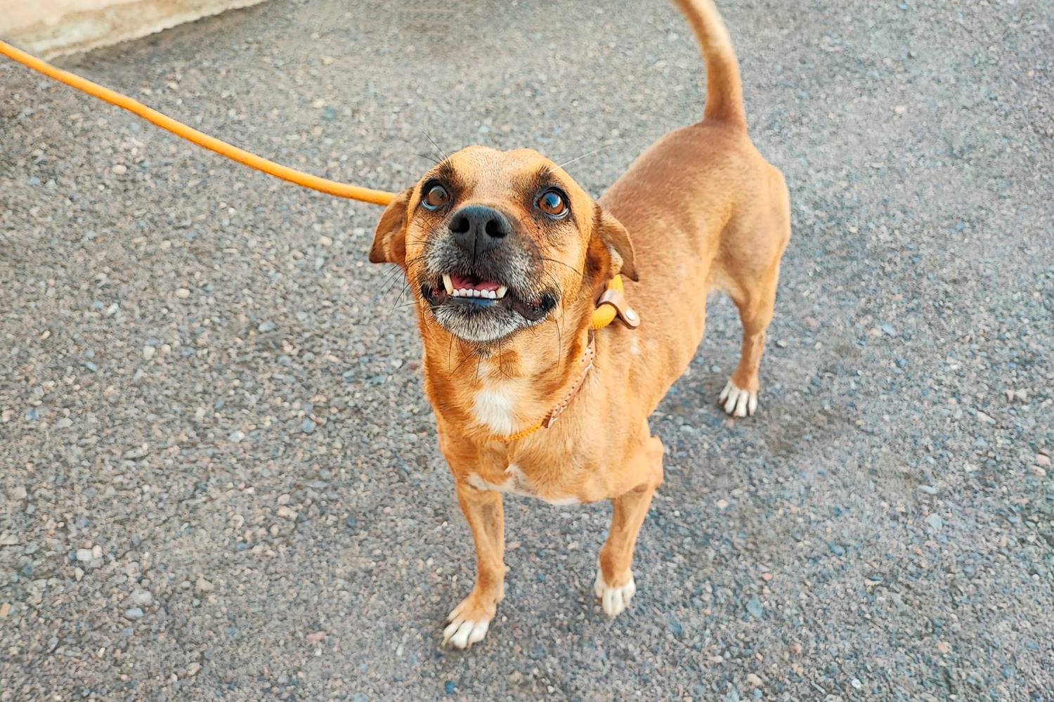 Ob er jemals eine richtige Familie hatte, wissen wir nicht. Doch eines ist sicher: Pulgui ist ein echter Sympathieträger auf vier Pfoten! Der süße Kerl sieht immer aus, als hätte er ein Lächeln im Gesicht. Er ist super freundlich zu allen und versteht sich einfach mit jedem. Er ist eher ruhig und ein aufmerksamer Begleiter, der zudem sehr vorbildlich an der Leine läuft.
